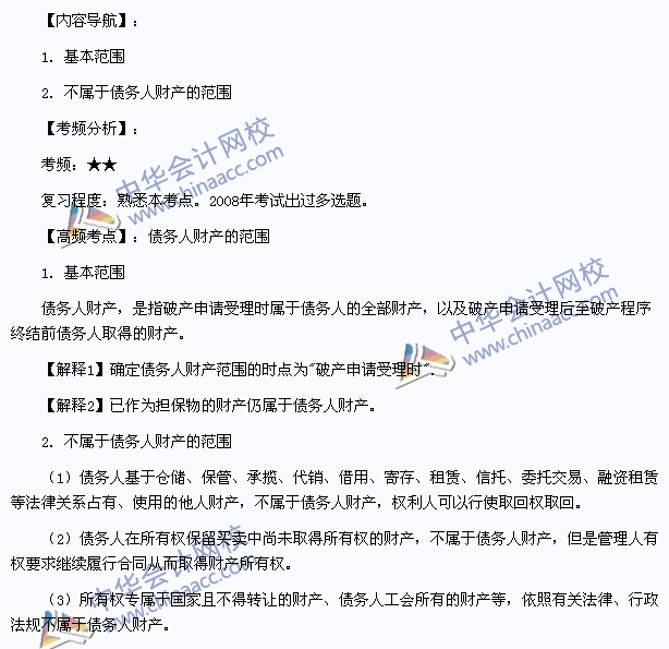 我们一起来学习2013注册会计师考试《经济法》高频考点:债务人财产的范围。本考点属于《经济法》第七章企业破产法律制度第四节债务人财产的内容。