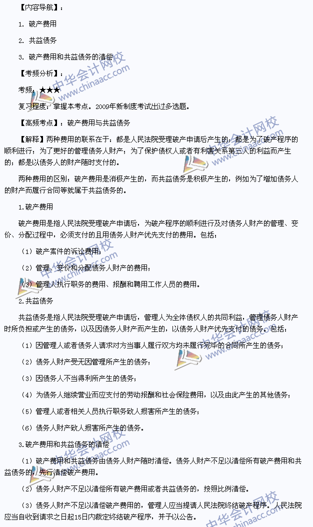 我们一起来学习2013注会考试《经济法》高频考点:破产费用与共益债务。本考点属于《经济法》第七章企业破产法律制度第四节债务人财产的内容。