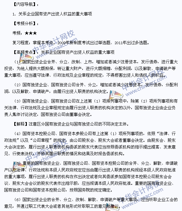 我们一起来学习2013注会考试《经济法》高频考点:关系企业国有资产出资人权益的重大事项。本考点属于《经济法》第九章企业国有资产法律制度第一节企业国有资产法律制度概述的内容。