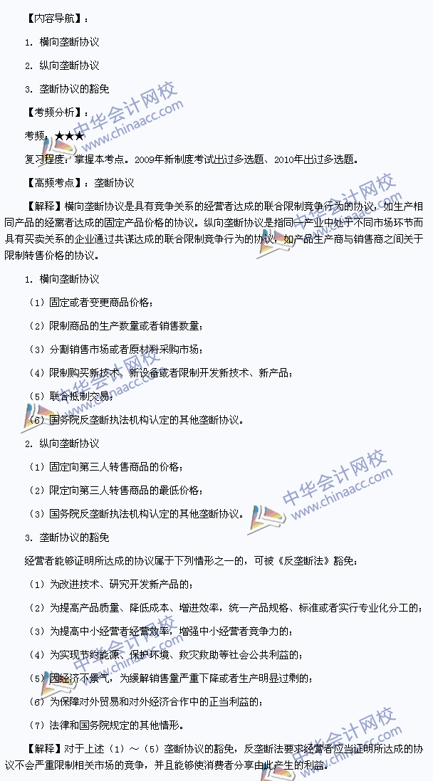 我们一起来学习2013注会考试《经济法》高频考点:垄断协议。本考点属于《经济法》第十章反垄断法律制度第二节垄断协议及其法律规制的内容。