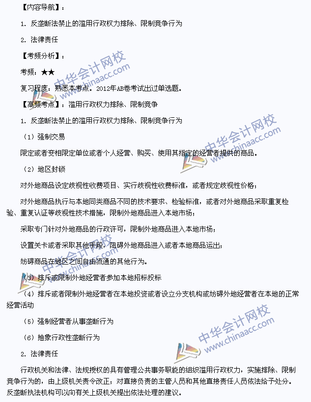 我们一起来学习2013注会考试《经济法》高频考点:滥用行政权力排除、限制竞争。本考点属于《经济法》第十章反垄断法律制度第五节滥用行政权力排除、限制竞争及其法律规制的内容。