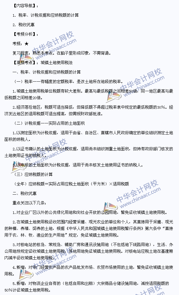 我们一起来学习2013注册会计师《税法》高频考点:城镇土地使用税法。本考点是《税法》第八章房产税法、城镇土地使用税法、契税法和耕地占用税法第二节城镇土地使用税法的内容。