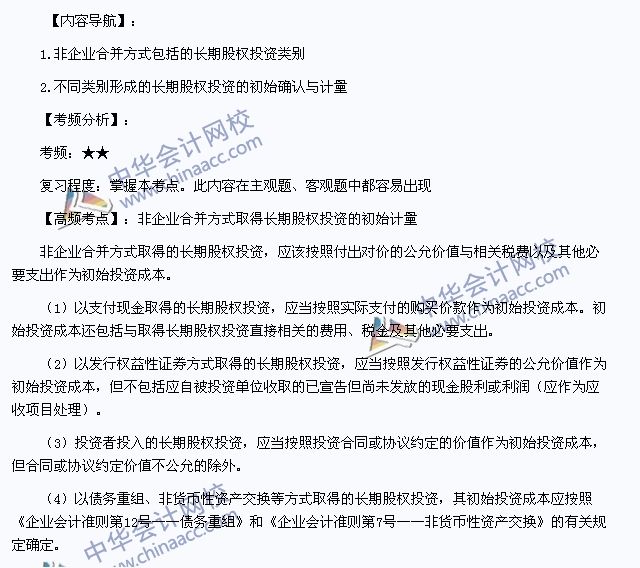 我们一起来学习2013注册会计师考试《会计》高频考点:非企业合并方式取得长期股权投资的初始计量。本考点属于《会计》第四章长期股权投资第一节长期股权投资的初始计量的内容。