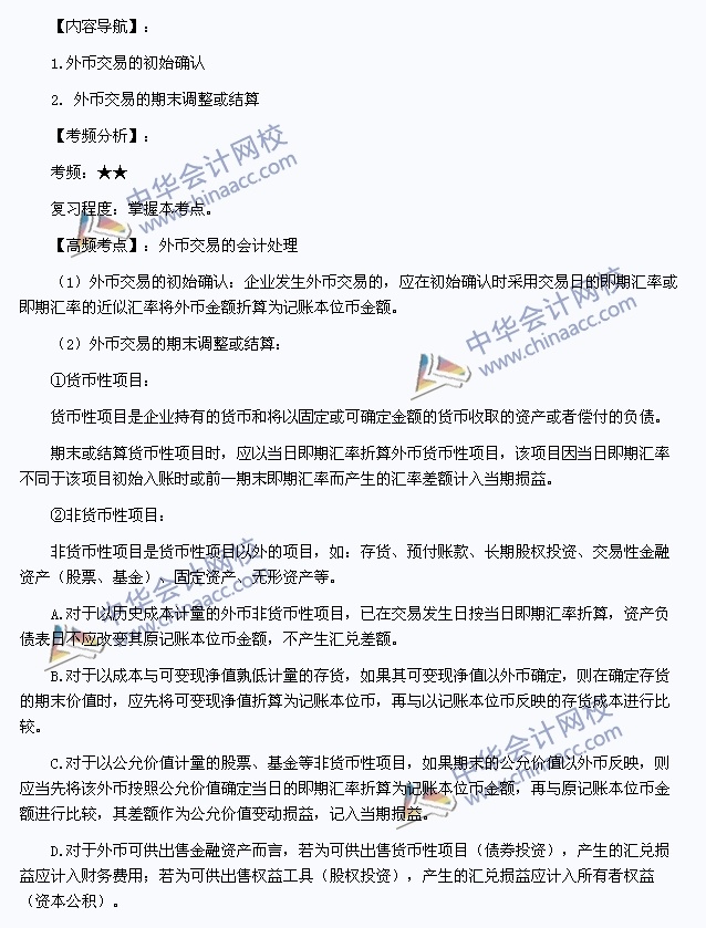 我们一起来学习2013年注册会计师《会计》高频考点:外币交易的会计处理。本考点属于《会计》第二十章外币折算第二节外币交易的会计处理的内容。