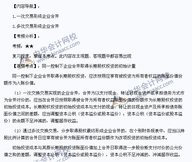 我们一起来学习2013注册会计师考试《会计》高频考点:同一控制下企业合并取得长期股权投资的初始计量。本考点属于《会计》第四章长期股权投资第一节长期股权投资的初始计量的内容。