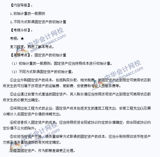 我们一起来学习2013注册会计师考试《会计》高频考点:固定资产的初始计量。本考点属于《会计》第五章固定资产第一节固定资产的确认和初始计量的内容。