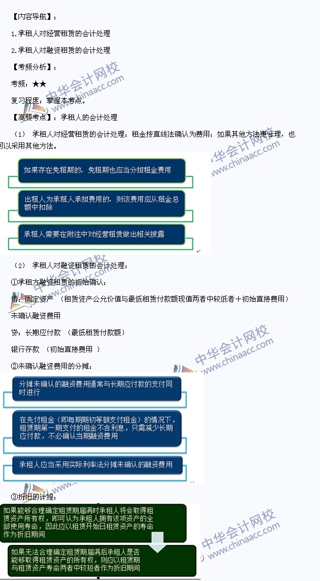 我们一起来学习2013年注册会计师《会计》高频考点:承租人的会计处理。本考点属于《会计》第二十一章租赁第二节承租人的会计处理的内容。