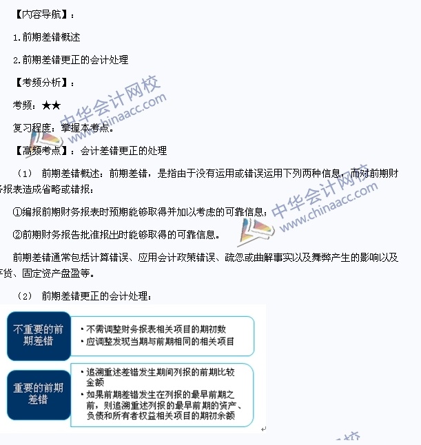我们一起来学习2013年注册会计师《会计》高频考点:会计差错更正的处理。本考点属于《会计》第二十二章会计政策、会计估计变更和差错更正第三节前期差错及其更正的内容。