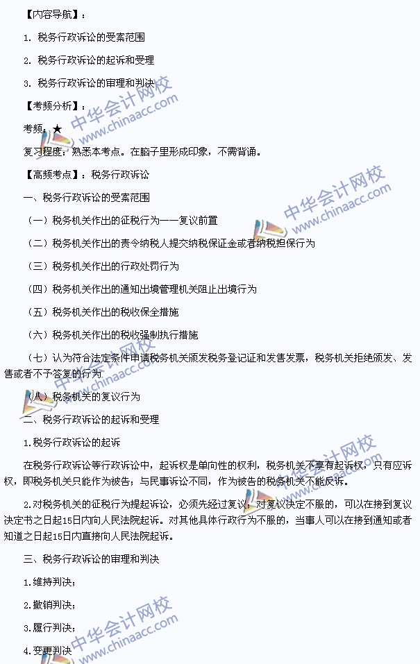 我们一起来学习2013注册会计师《税法》高频考点:税务行政诉讼。本考点是《税法》第十三章税务行政法制第三节税务行政诉讼的内容。