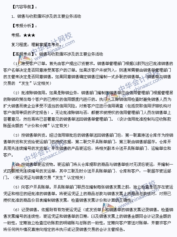 我们一起来学习2013年注册会计师《审计》高频考点:销售与收款循环涉及的主要业务活动。本考点属于《审计》第十三章销售与收款循环的审计第一节销售与收款循环的特点的内容。