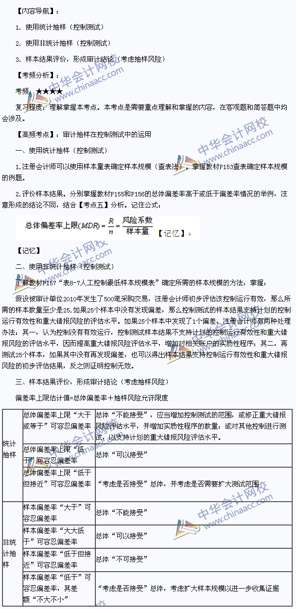 我们一起来学习2013注册会计师《审计》高频考点:审计抽样在控制测试中的运用。本考点属于《审计》第八章审计抽样第三节审计抽样在控制测试中的运用的内容。