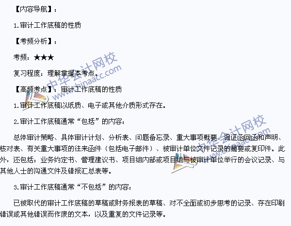 我们一起来学习2013注册会计师《审计》高频考点:审计工作底稿的性质。本考点属于《审计》第十章审计工作底稿第一节审计工作底稿概述的内容。