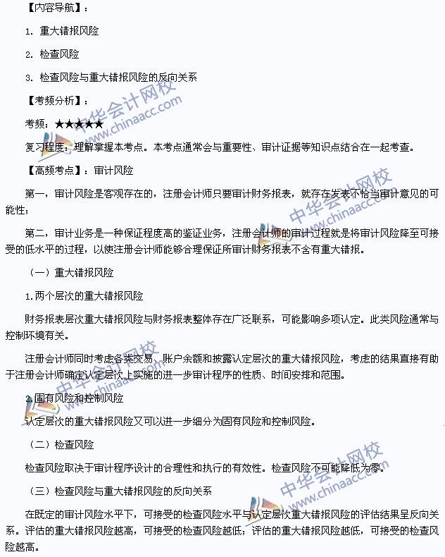 我们一起来学习2014注册会计师《审计》高频考点:审计风险。本考点属于《审计》第一章审计概述第五节审计风险的内容。