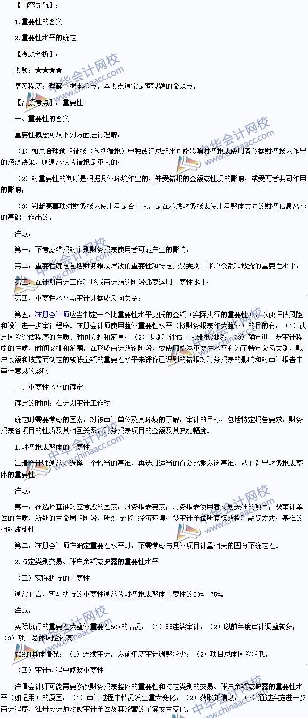 我们一起来学习2014注册会计师考试《审计》高频考点:重要性。本考点属于《审计》第二章审计计划第三节重要性的内容。