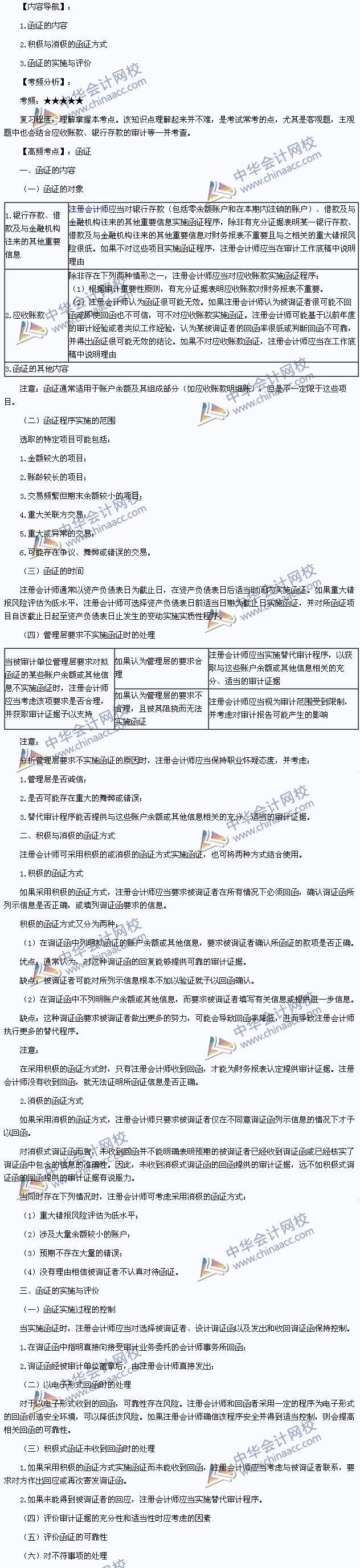 我们一起来学习2014注册会计师考试《审计》高频考点:函证。本考点属于《审计》第三章审计证据第三节函证的内容。