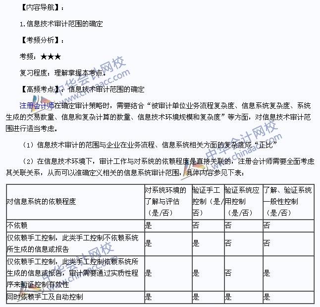 我们一起来学习2014注册会计师考试《审计》高频考点:信息技术审计范围的确定。本考点属于《审计》第五章信息技术对审计的影响第二节审计抽样的基本概念的内容。