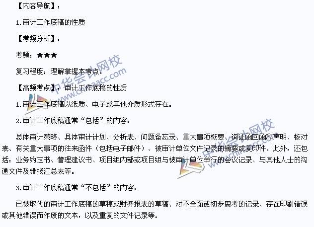 我们一起来学习2014注册会计师考试《审计》高频考点:审计工作底稿的性质。本考点属于《审计》第六章审计工作底稿第一节审计工作底稿概述的内容。
