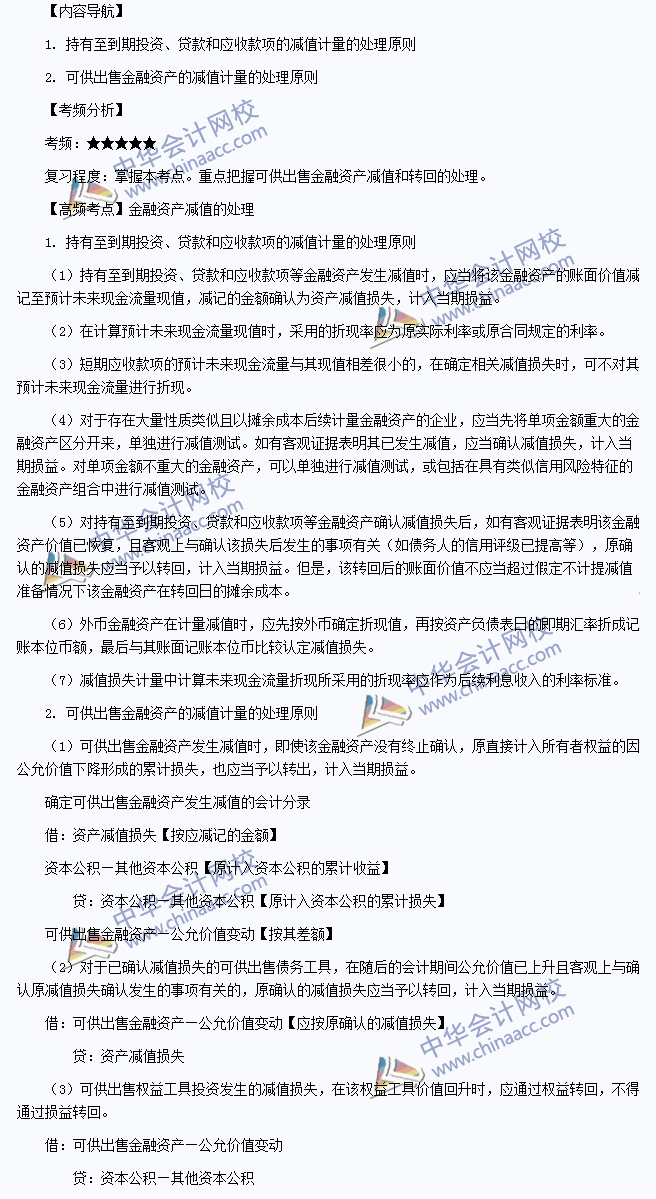 我们一起来学习2014注册会计师《会计》高频考点:金融资产减值的处理。本考点属于《会计》第二章金融资产第六节金融资产减值的内容。