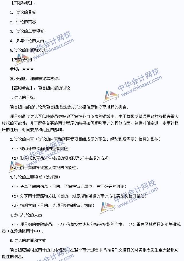 我们一起来学习2014注册会计师考试《审计》高频考点:项目组内部的讨论。本考点属于《审计》第七章风险评估第二节风险评估程序、信息来源以及项目组内部的讨论的内容。
