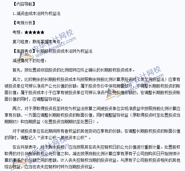 我们一起来学习2014《会计》高频考点:长期股权投资成本法转为权益法。本考点属于《会计》第四章长期股权投资第三节长期股权投资核算方法的转换及处置。