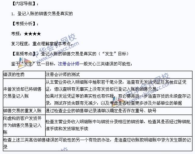 我们一起来学习2014注册会计师考试《审计》高频考点:登记入账的销售交易是真实的。本考点属于《审计》第九章销售与收款循环的审计第三节销售与收款循环的实质性程序的内容。