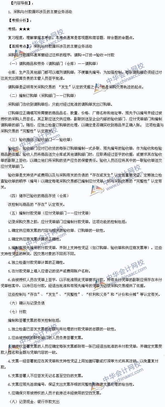 我们一起来学习2014注册会计师考试《审计》高频考点:采购与付款循环涉及的主要业务活动。本考点属于《审计》第十章采购与付款循环的审计第一节采购与付款循环的特点的内容。
