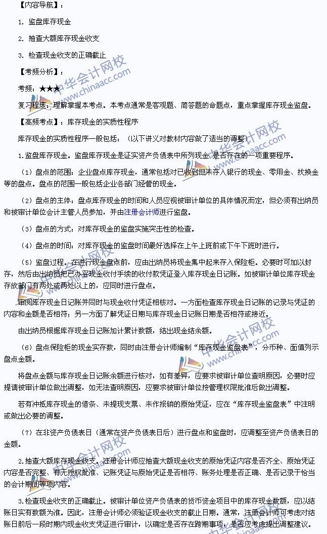 我们一起来学习2014注册会计师考试《审计》高频考点:库存现金的实质性程序。本考点属于《审计》第十二章货币资金的审计第二节库存现金审计的内容。