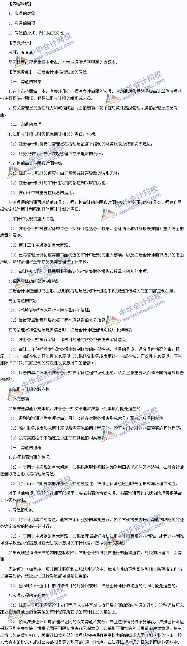 我们一起来学习2014注册会计师考试《审计》高频考点:注册会计师与治理层的沟通。本考点属于《审计》第十四章审计沟通第一节注册会计师与治理层的沟通的内容。