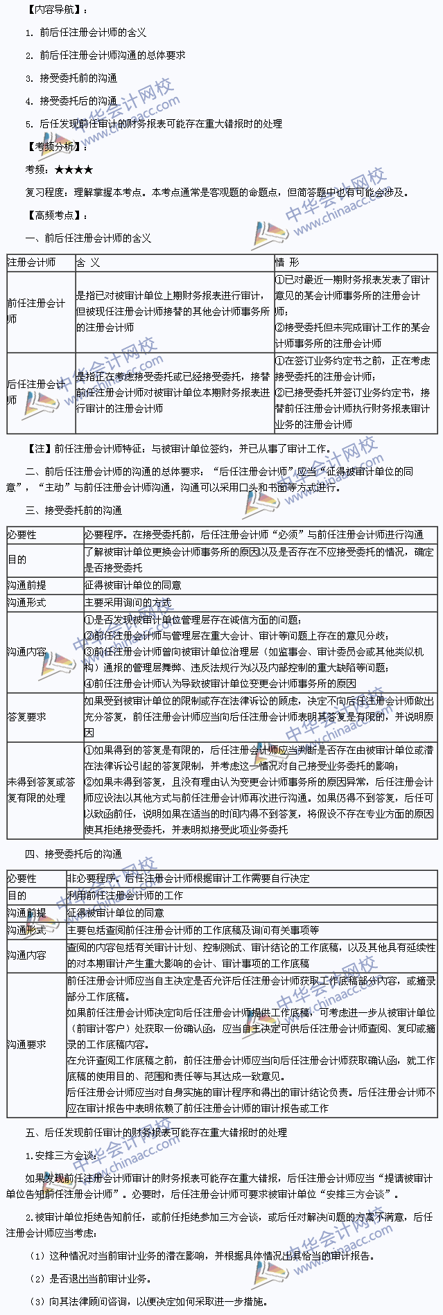 我们一起来学习2014注册会计师考试《审计》高频考点:前后任注册会计师的沟通。本考点属于《审计》第十四章审计沟通第二节前任注册会计师与后任注册会计师的沟通的内容。