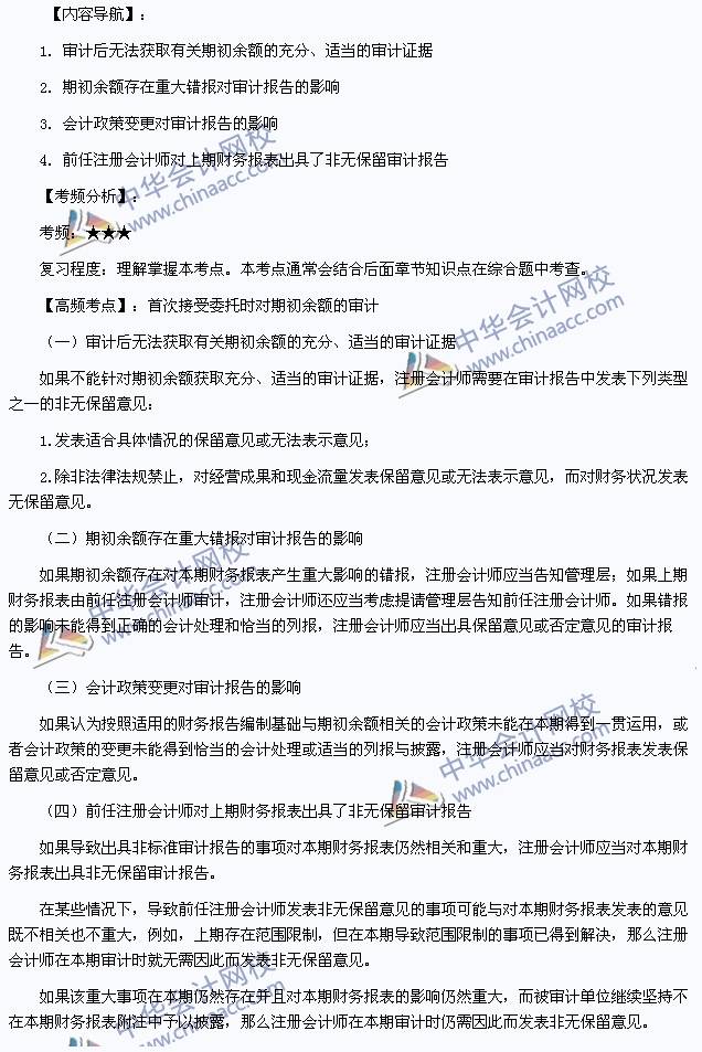 我们一起来学习2014注册会计师《审计》高频考点:首次接受委托时对期初余额的审计。本考点属于《审计》第十七章其他特殊事项的审计第四节首次接受委托时对期初余额的审计的内容。