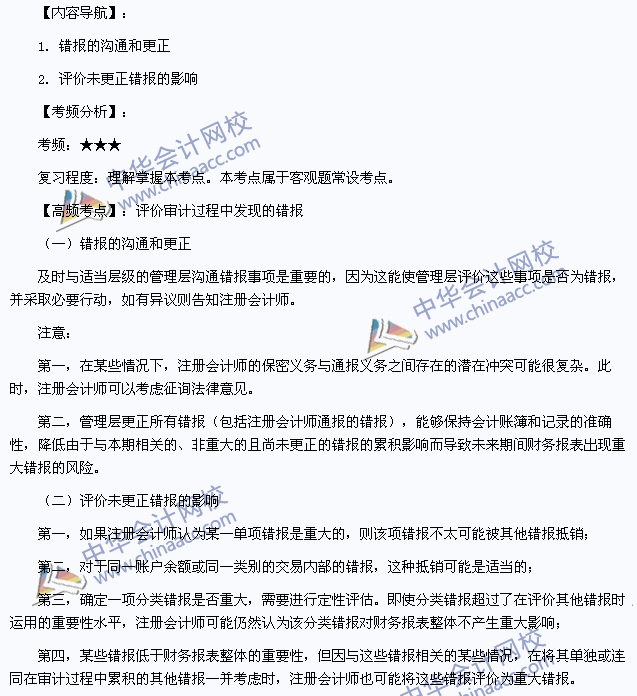 我们一起来学习2014注册会计师《审计》高频考点:评价审计过程中发现的错报。本考点属于《审计》第十八章完成审计工作第一节完成审计工作概述的内容。