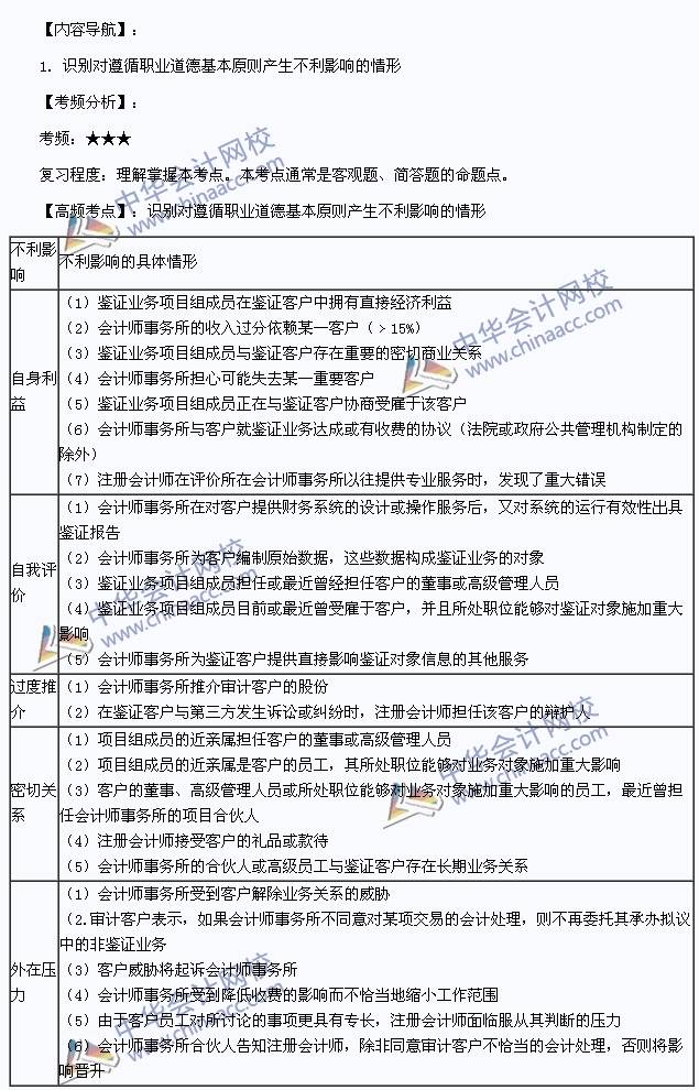 我们一起来学习2014注册会计师《审计》高频考点:识别对遵循职业道德基本原则产生不利影响的情形。本考点属于《审计》第二十一章职业道德基本原则和概念框架第三节注册会计师对职业道德概念框架的具体运用的内容。
