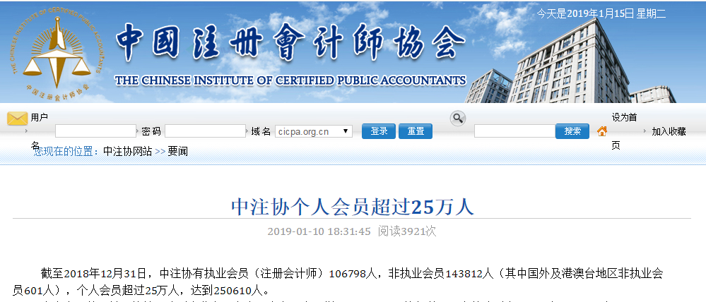 首先是中注协在1月10日发布的——《中注协个人会员超过25万人》和1月11日发布的——《中国注册会计师行业党委决定2019年为行业“职业化建设年”》中所包含的以下信息: