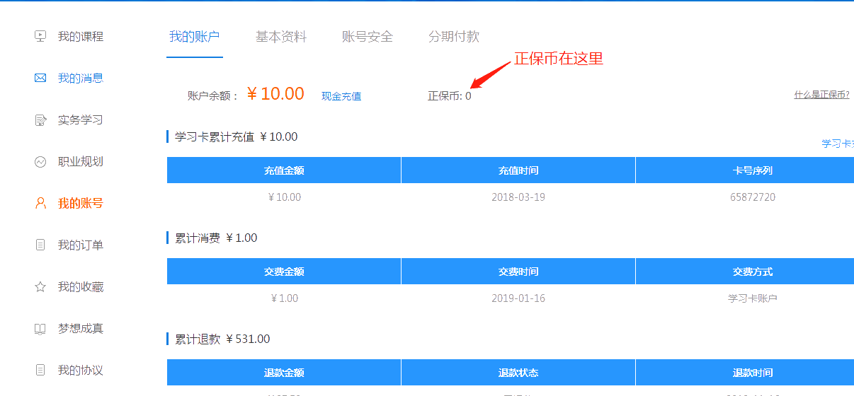 5、接下来你就能看到你的结算界面出现了一个叫做正保币的东西!下面小编为你仔细讲一讲正保币!