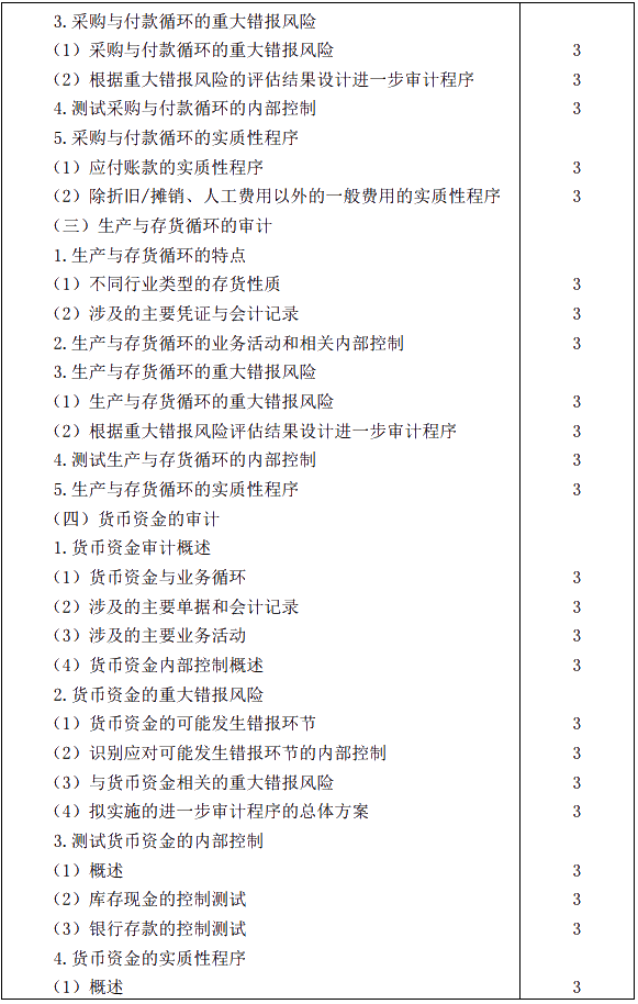3.财务报表审计中各类交易和账户余额审计,包括销售与收款循环、采购与付款循环、生产与存货循环以及货币资金的审计;