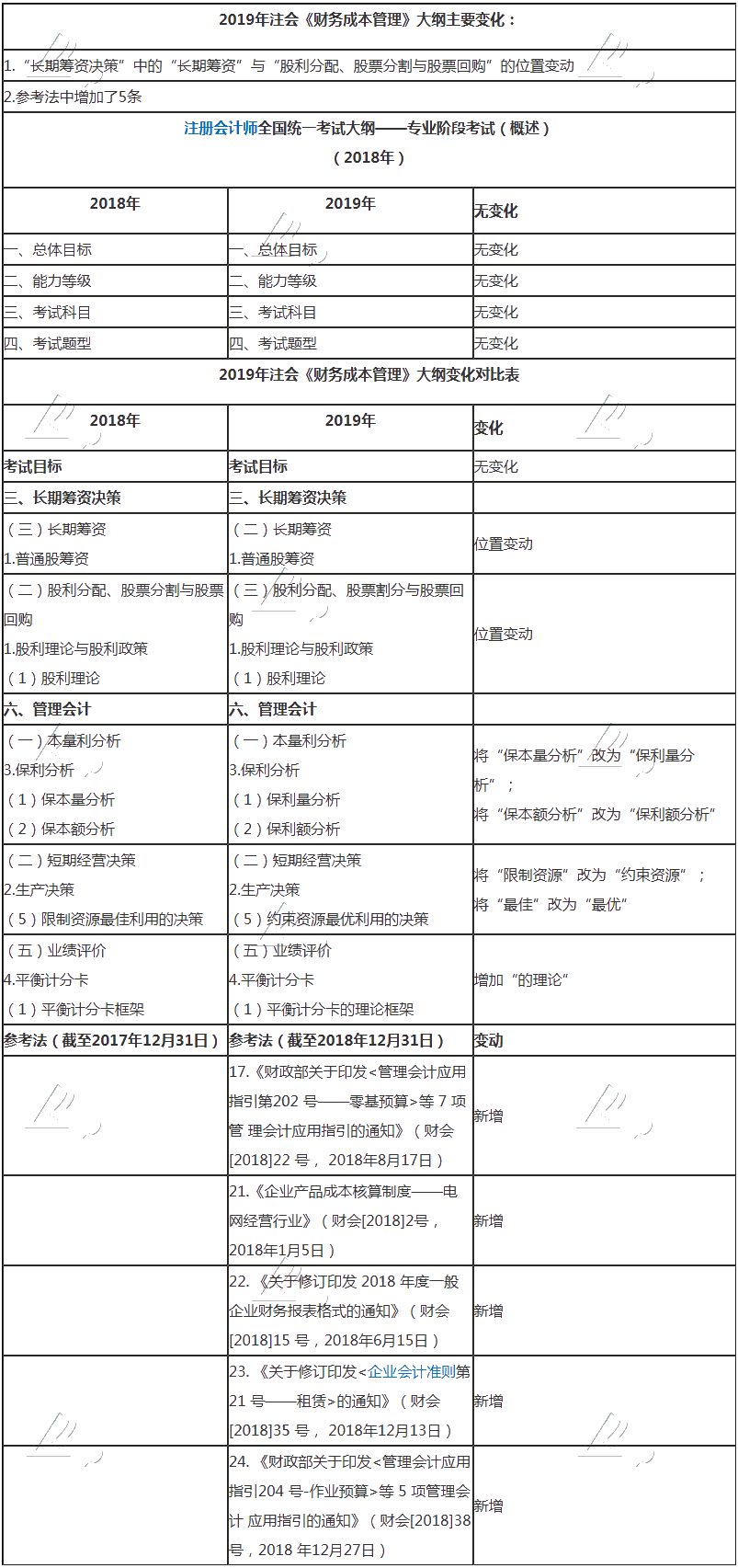 2019年3月19日随着中注协官网公布2019年注会考试大纲、招生简章开始,2019年的注会考试正式拉开帷幕!2019年的注会考生们让我们从新出发,迎接2019年的考试吧!网校专家已将加班加点的为大家列出了2019年大纲与2018年的对比,快来看一下吧!