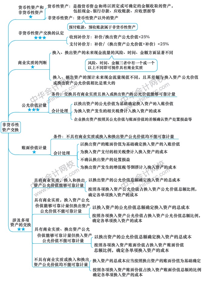 以下是2019年注会《会计》第十八章“非货币性资产交换”思维导图: