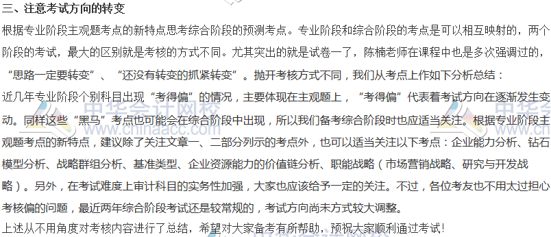 注册会计师综合阶段考试将于2019年8月24日开启,留给各位学员的时间不多了,网校参加注册会计师综合阶段的考生大都是各个行业的财会顶梁柱,想必工作十分繁忙,基本没时间备考,所以网校为了帮助各位学员节约时间,精心准备了综合阶段重点考核内容!快快收藏学起来吧!