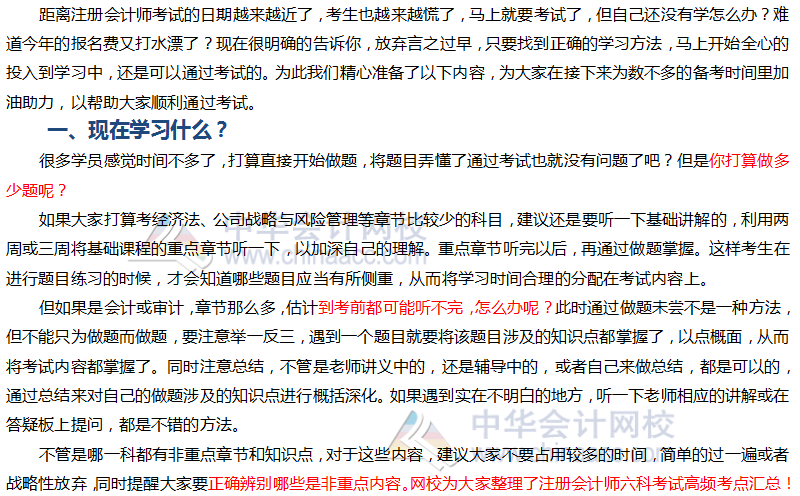 注册会计师考试进入冲刺阶段!各位网校的学员朋友们,想必都慌了吧!别着急,紧急备考哪家强,快让小编来教你!