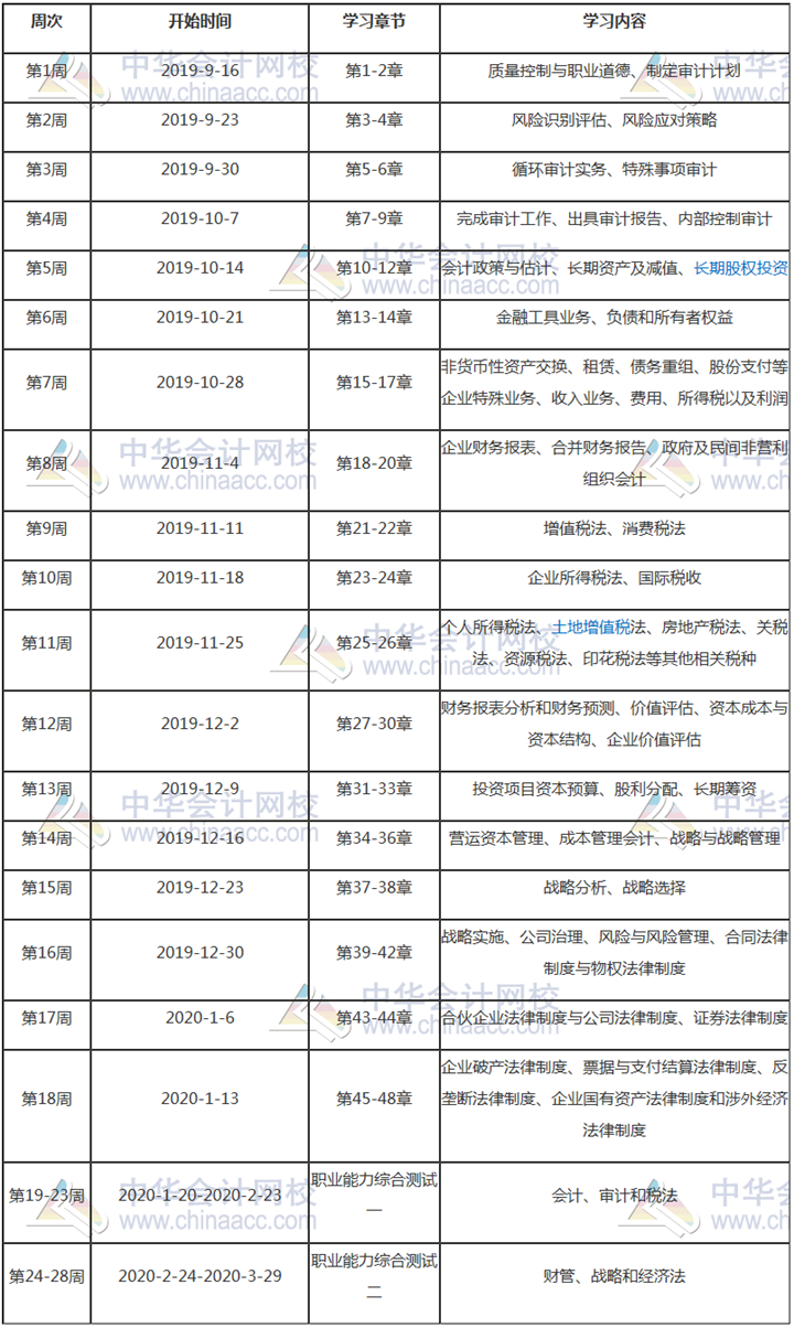 为帮助同学们顺利完成2020年注册会计师综合阶段的学习,制定了这份预习计划表,以方便同学们对大纲公布前的学习进度进行全面控制,达到较好的学习效果。