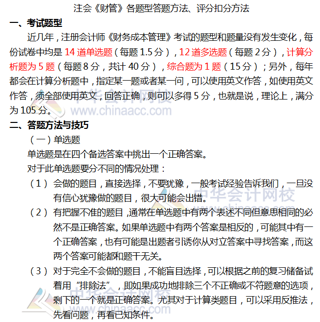 以下为CPA《财务成本管理》科目的各题型答题方法、评分扣分方法。
