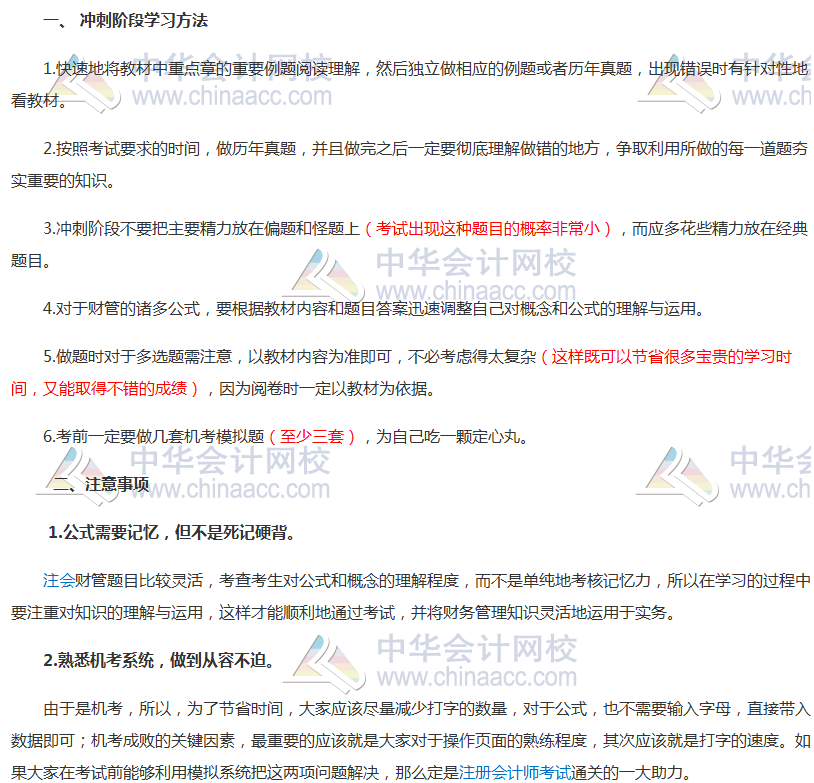注会备考进入了倒计时,进入了冲刺阶段;而注会《财管》科目知识量大,涉及公式多,计算量又大,是很多学员担心的科目。为此,网校小编为考生们奉上注会《财管》冲刺阶段学习方法及注意事项,助力您梦想成真!