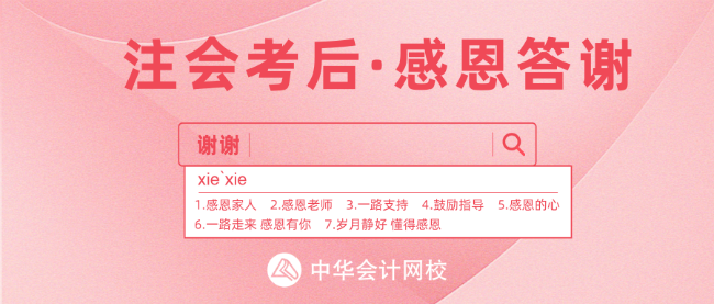 相信你的备考路上一定有人在默默支持着你!无言奉献的家人,良言相劝的友人、教授知识的老师们!你一定有话要对他们说吧!快来正保会计网校注会考后感谢帖!