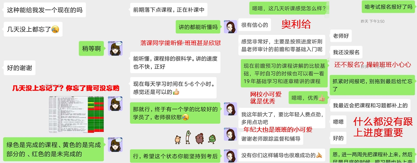 各位考生你先不要怕,这不是“唐僧在念经”,这是我们可爱的“班班【班主任】”在催学习进度呐!是不是像极了让你穿秋裤的妈妈,缝你破洞裤的奶奶,趴在教室后门的班主任!天天唠唠叨叨的说着我们“不爱听”,却在成年后“再也听不到”的那些“逆耳忠言与关心”。今天我们就去看看VIP的学员们是如何“重温”这些唠叨的吧~