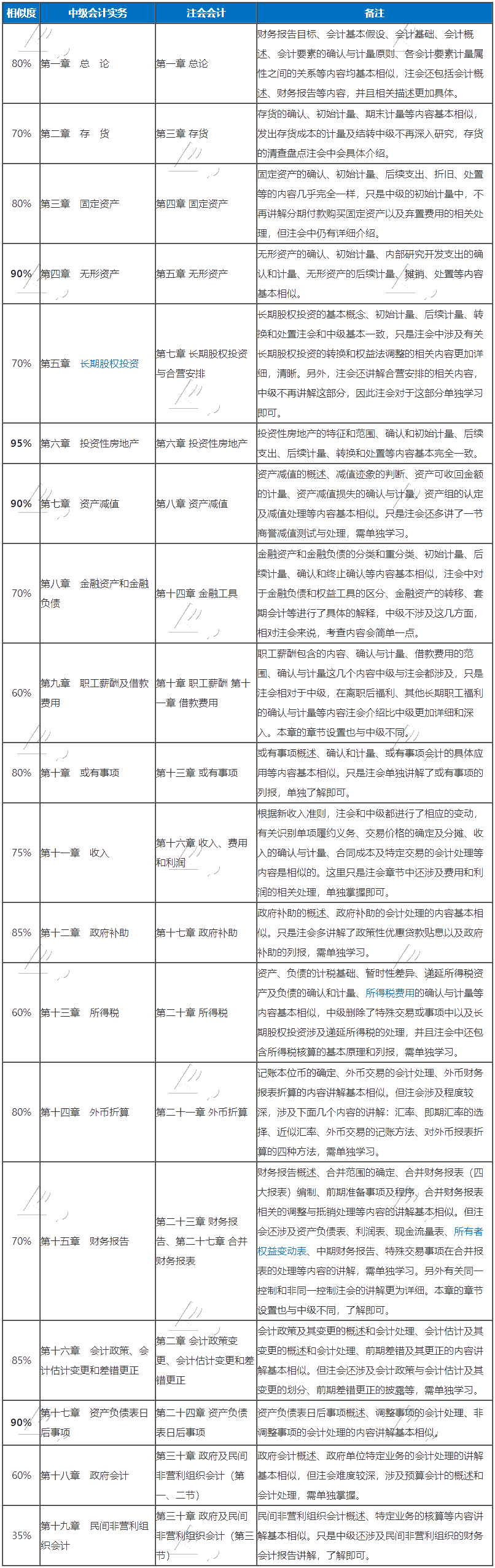 根据上表可以看出,如果一起学习的话,要两厢结合着学习,包括学习中级、注会教材的概念、例题等内容,但是也要注意这两个不同考试中《中级会计实务》/《会计》科目在内容上的差异。
