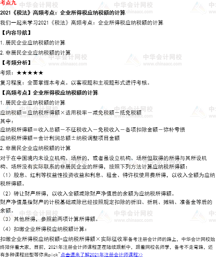 我们一起来学习2021年《税法》高频考点:企业所得税应纳税额的计算。本考点属于《税法》第四章企业所得税法的内容。