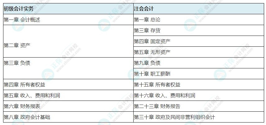 初级与注会,考试内容部分科目章节内容有重合!