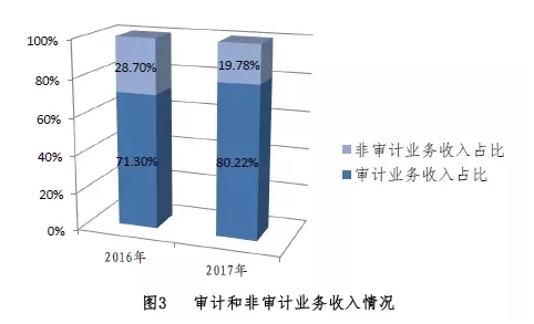 根据官方公开数据,2016年审计业务收入占比71.3%,2017年占比80.22%。审计业务收入占据主体地位,且比重有所加大。