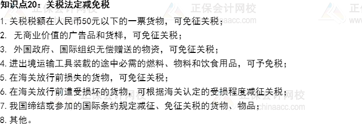 注会税法预习阶段易混易错知识点20:关税法定减免税