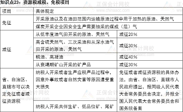 注会税法预习阶段易混易错知识点23:资源税减税、免税项目